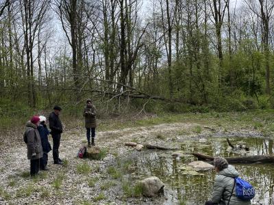 På tirsdagens vandring med litteratur og natur tog kommunens biolog Jacob Ruskov-Nielsen og litteraturformidler Lea Fløe de medvandrende med på en lille tur, hvor det lille skovområde bag Vandhaverne blev nærstuderet.21. maj 2024